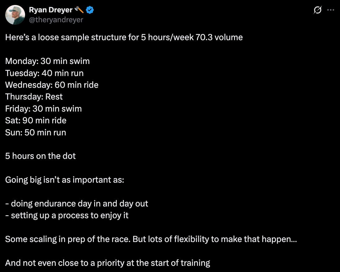 I’ve averaged ten hours of training per week for the last five years. But what I’ve learned from coaching is that you don’t need that.